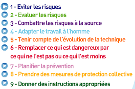 Pour mettre en place une démarche de prévention, il est nécessaire de s’appuyer sur les neuf grands principes généraux (L.4121-2 du Code du travail ) qui régissent l’organisation de la prévention.